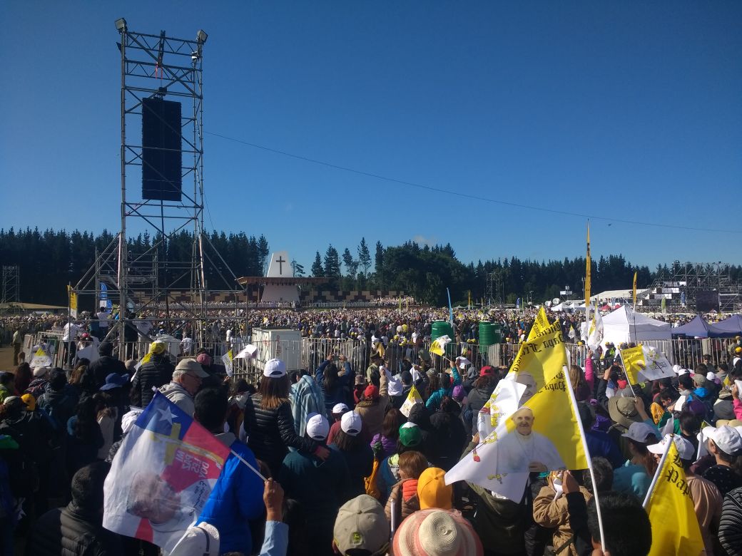 “Excelente experiencia, no sólo por escucharlo y compartir sus silencios, también por la tremenda fiesta de Iglesia donde se confirma nuestra fe, se renueva la esperanza y fortalece la caridad. “Artesanos de la unidad, de la paz, del diálogo… ” es la gracia de Dios que se derrama por medio de la persona del Papa y permite que el Espíritu Santo obre en la Iglesia Chilena y en particular sobre la zona sur de nuestro país. Aquellos que hablaban ayer, hoy silencian al ver como el Papa convoca a muchos y genera un ambiente que supera nuestros egoísmos y cansancios, los frutos de su presencia en medio nuestro se empiezan a percibir. Nos corresponde, animados por su mensaje, acoger su palabra para que nuestras mentes y corazones pongan en movimiento nuestras manos de “Artesanos“. Carlos Feijoo, peregrino de la Parroquia El Sagrario de Ancud