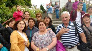 “Con mucha alegría y esperanza iniciamos nuestro viaje el lunes 15 a las 08.45 hrs. desde Chaitén por la vía bimodal, llegando a Temuco aproximadamente a las 12 de la noche, donde fuimos hospedados en casas de familias, quienes nos atendieron con mucho cariño. Todo esto hizo posible que los 36 peregrinos viviéramos una linda experiencia de fe. Damos gracias a Dios de que cinco personas de la Villa Santa Lucía también fueran parte de esta peregrinación disponiendo para ellos lugar privilegiado en el lugar de la Eucaristía. Damos las gracias a María, Nuestra Madre, quien nos acompañó todo nuestro viaje”. Pbro. Antonio Tapia, coordinador zona cordillera