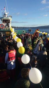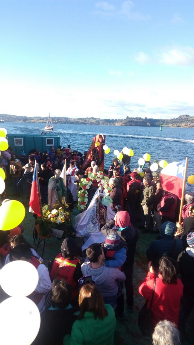Al término de la Eucaristía en honor de los dos santos y columnas de la Iglesia, se bailaron dos pie de cueca chilota, para después salir en procesión hasta la avenida Gamboa y proceder a formar una caravana vehicular con las imágenes de la Virgen del Carmen y la de San Pedro, para dirigirse al muelle de Castro, en donde esperaba la barcaza Don Orlando y las embarcaciones de los pescadores artesanales, para el tradicional paseo y pedir a San Pedro interceda ante Dios por una abundante pesca.