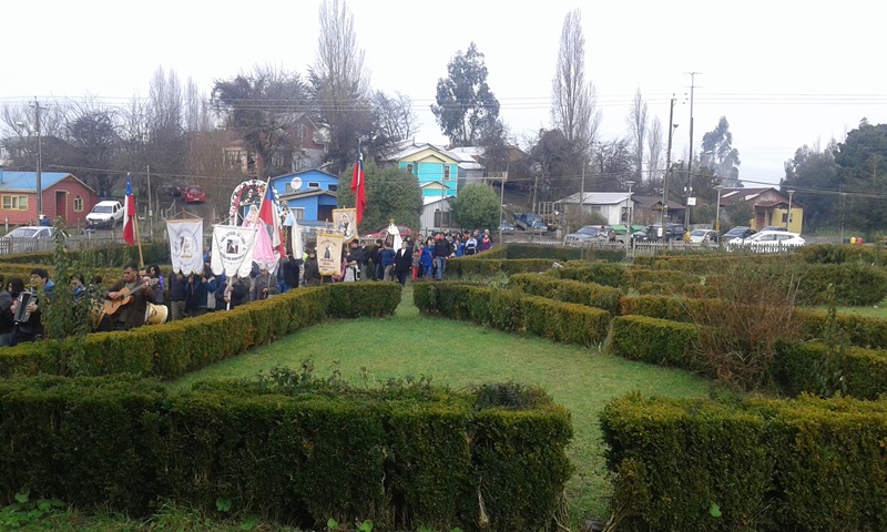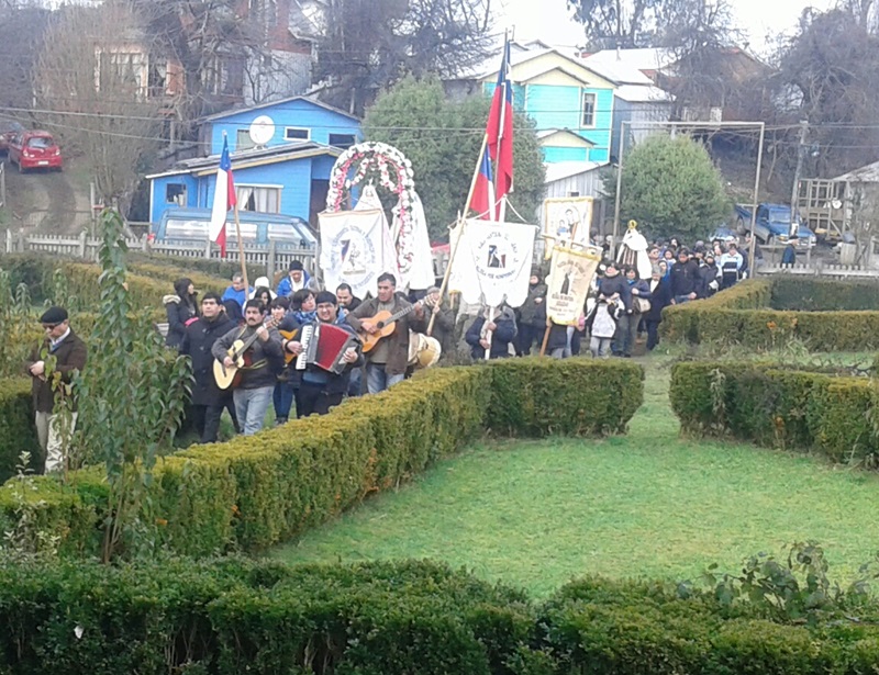 Como es costumbre a las 12:30 Hrs., las nueve capillas que componen la Parroquia san Juan Pablo II, se dieron cita en la intersección de la ruta 5 y la calle de ingreso al Templo Parroquial, cada Capilla con su Imagen de las diferentes advocaciones marianas, peregrinaron al son de pasacalles hasta ingresar a la Iglesia adornada especialmente para la ocasión.