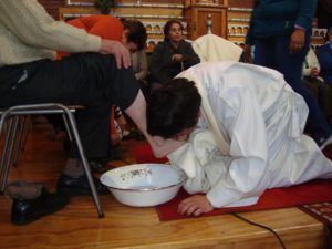 Empezando con el jueves santo, noche en que se celebra la institución de la Eucaristía por Jesús, se realizó en la Parroquia San Judas Tadeo la Misa que recuerda la última cena y el lavado de los pies, la cual fue presidida por el párroco P. Arturo Mansilla. Al final de la celebración se hizo la procesión con el Santísimo Sacramento dentro del Templo, para luego juntos adorar al Señor en esa noche santa.