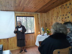 Este día 31 de Octubre, en la bienvenida la Hna. Magda Crestian agradeció a todos su valiosa participación y con el gesto de entregar un rosario a los asistentes, pidió a todos que cada día hagamos un tiempo para rezar por Chile, oración que se realizó este día para motivar a que las personas la reproduzcan en sus hogares, ya que se vive tiempos difíciles y todos estamos llamados a orar por la justicia y la paz.