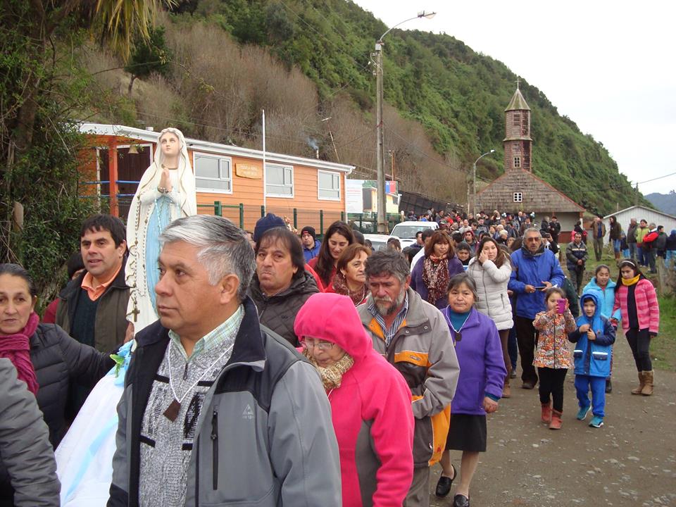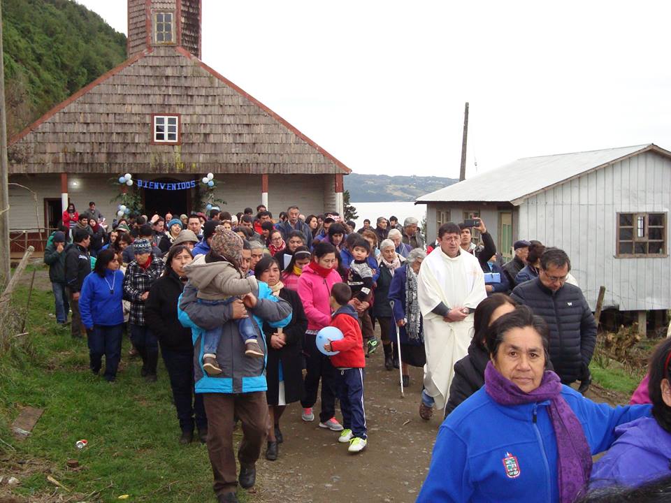 El día 16 de Julio las comunidades de la Parroquia Curaco de Veléz se unieron para celebrar a la Virgen del Carmen en Huyar Bajo, Diócesis de Ancud.