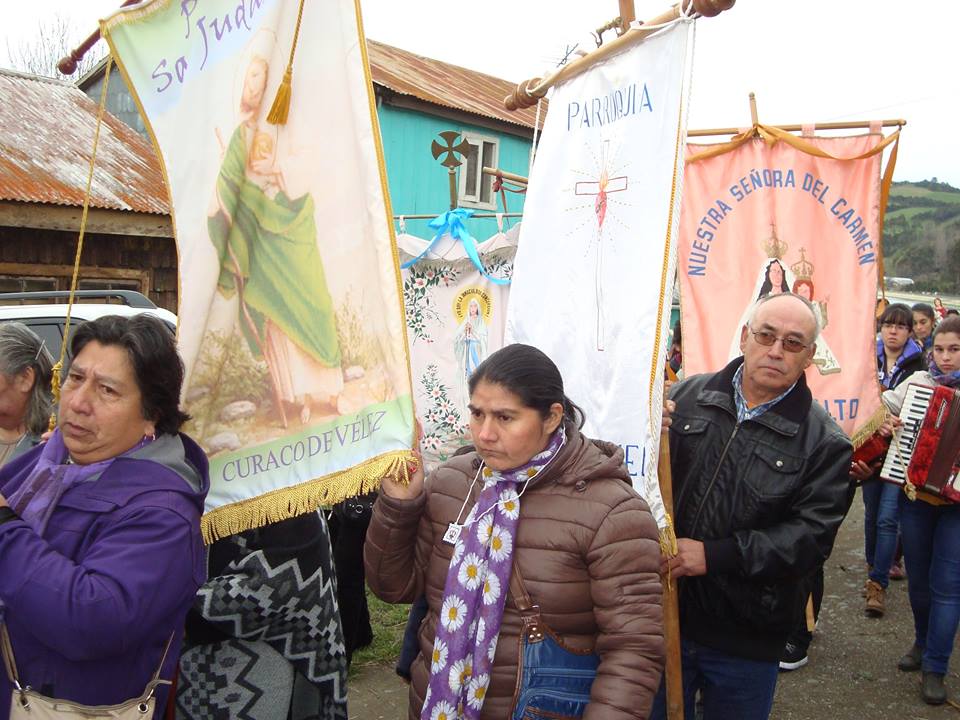 En el día de Nuestra Señora del Carmen, Reina, Madre y Patrona de Chile, las comunidades de la Parroquia San Judas Tadeo de Curaco de Veléz se unieron para realizar una hermosa celebración entre hermanos hijos de un mismo Padre y Madre. La fiesta se dio lugar en la Capilla de Huyar Bajo, cuya patrona es nuestra Virgencita del Carmen.