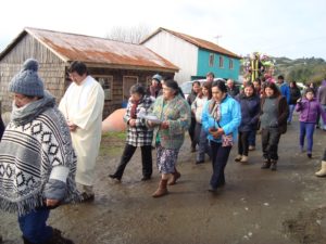 Seguidamente se dio paso a la Eucaristía presidida por el párroco P. Arturo Mansilla, en la cual participó el animado coro de niños de la comunidad de Palqui. El padre Arturo expresó que “ha sido un día helado, pero preciosa la fiesta, mucha gente pudo venir de todas las comunidades de la parroquia y también de Meulin”, además recordó su palabras en la misa “no solamente tenemos que restaurar el templo de Uyar Bajo, sino restaurar toda la vida espiritual de nuestras comunidades, reencantarnos, que nos embarquemos en este proyecto de ser testigos de Cristo.”