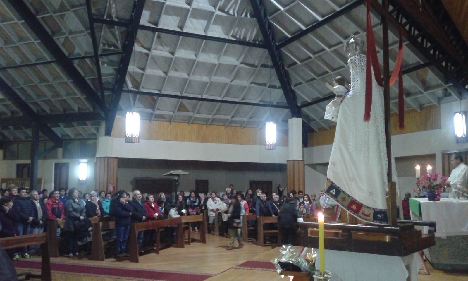 .- Imagen sale desde la Parroquia Sagrada Familia a punto de encuentro de peregrinación juvenil.