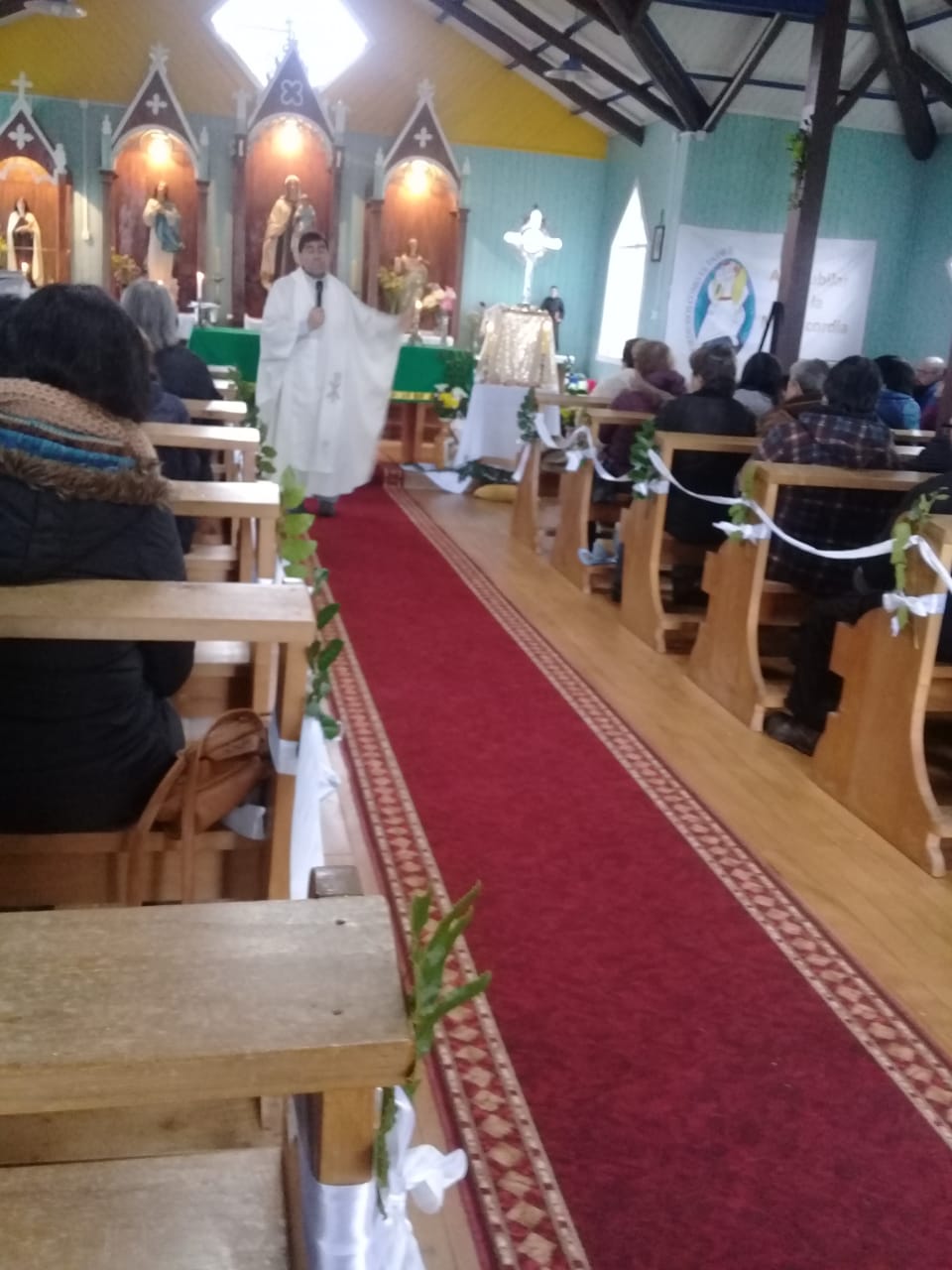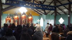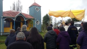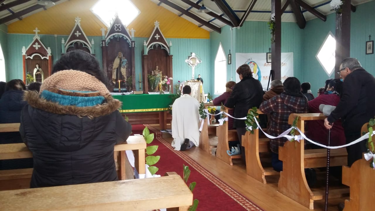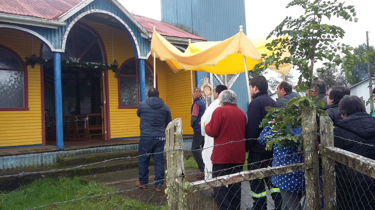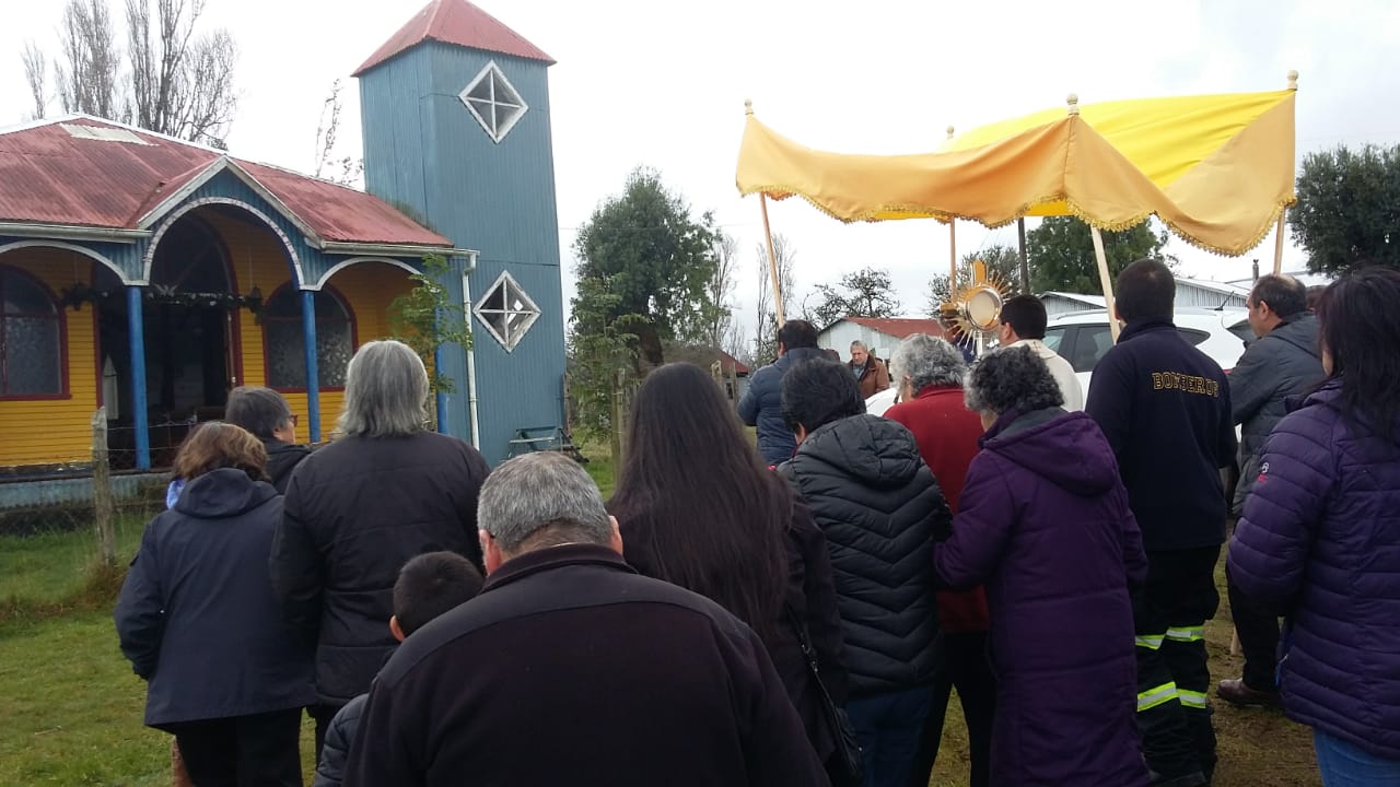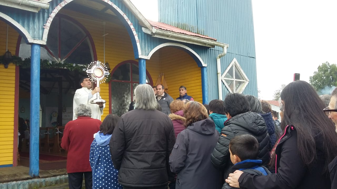 El domingo 05 de Agosto, en el contexto del desarrollo del Congreso Eucarístico Nacional (CEN), en la Parroquia San Juan Pablo II, Diócesis de Ancud, se realizó un hermoso encuentro de oración, adoración, contemplación y compartir comunitario en la Capilla de Canaán, sector rural de la Comuna de Chonchi. Primeramente entre cantos y alabanzas entró en procesión el Santísimo Sacramento, acompañado por las familias del sector y conducido por el párroco P. Edito Rain. Luego se dio paso a la Santa Misa bastante emotiva.