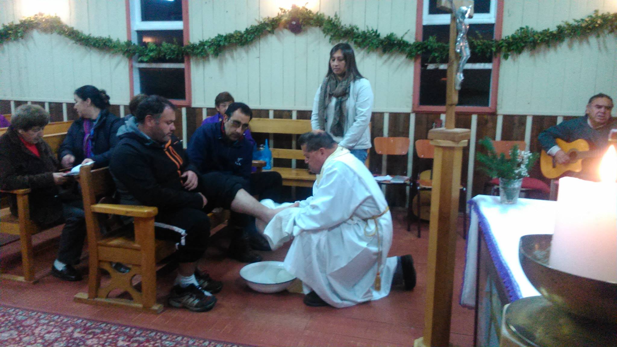 Después de vivir y celebrar la Cena del Señor y el lavatorio de pies el Jueves Santo, el viernes santo empezó con el Via Crucis en la mañana. La primera estación partió en la Capilla Cristo Obrero en un ambiente de recogimiento y oración, con cantos dolorosos, luego continuó la caravana hacia el Carmelo, junto a la imagen de Jesús Nazareno y la Virgen Dolorosa de Guapilacuy, era emocionante ver como se incorporaban más y más hermanos en cada sector donde se detenía para orar las estaciones, parte del sacrificio personal fue seguir en la procesión con la lluvia y el frío, orando y cantándole al Señor y a la Virgen en cada momento.
